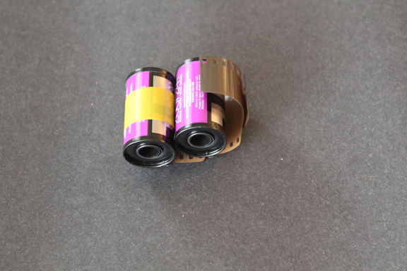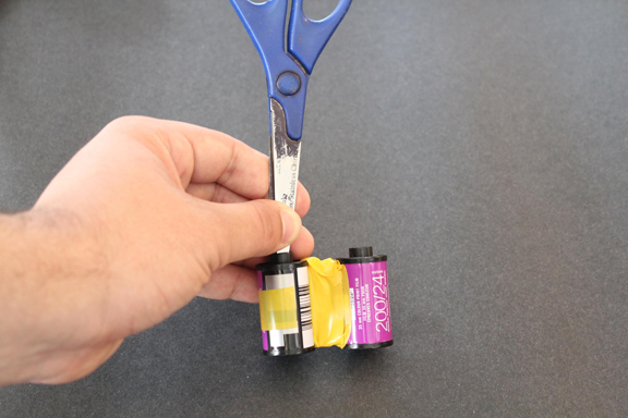 1. Take two canisters of film and sacrifice one by pulling all of the film out ( you should mark it somehow).