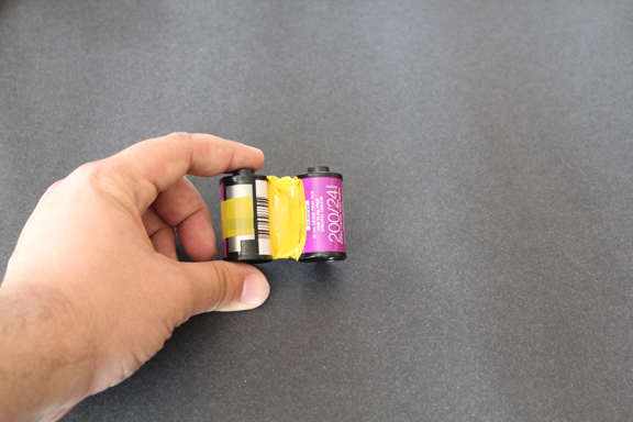 4. Tape the film together. Try not to overlap the tape too much so that it fits into the canister.