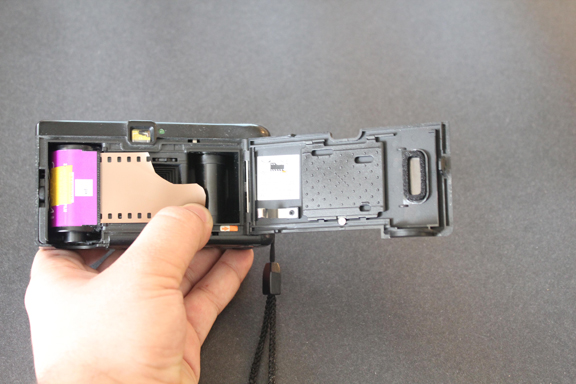 7. Undo the tape, cut the film, and put in camera ( you may or may not need to cut a lip for the film, some cameras need that lip to auto load).