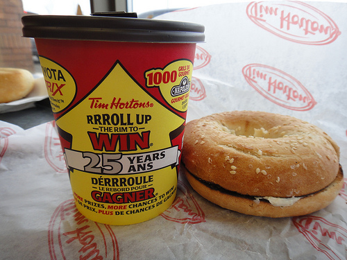 The cheapest option on campus definitely isn't the healthiest, but at Tim Horton's, a bagel and coffee will cost about a third of what it will at Sodexo. Photo: Calgary Reviews/Flickr.