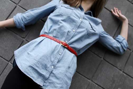 Let the shirt bellow out from the waist of the pants a bit, making the look seamless. Add a thick leather belt to complete this take on the men’s shirt.